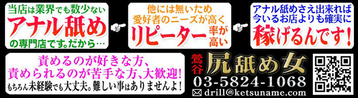 皆様は既存の風俗店でのアナル舐め(約5秒から10秒くらい)に満足されてますでしょうか? 最初のシャワーでお尻を洗われずがっかりしたことはありませんか?DVDに「ドリームウーマン」があるなら「ドリームアナル」(アナル舐め専門エロDVD)が あってもいいのにと思ったことはありませんか? そんな3度の飯よりアナル舐めが大好きな方のためのお店が当店です。 うつぶせ、四つん這い、ちんぐり返しは当たり前。しっかり広げてお時間いっぱい時にチロチロと舌先で、時にニチャニチャと奥深く、アナル舐めのフルコースをご堪能していただきます。フェラチオ天国日本の この時代、アナル舐めにももっと市民権を!アナル舐めはもはや常識!の時代が来るために当店は存在したいと思います。 また、多くのお客様の嗜好にお応えしたいがために様々なコースをご用意しております。アナル舐め入門者の方からアナル舐めマスターの方までより多くのお客様のニーズにお応えしたいと思っております。 是非 当店をご利用していただき、アナルを大きく広げてお尻を突き出してください!!そこには快楽の向こう側が確実に存在し、あなたはそれを知る事になるでしょう!! http://www.ketsuname.com/main | |