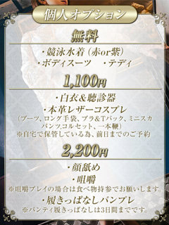 ・¥2200→特殊プレイ(例: 顔舐め、咀嚼、履きっぱなしパンティプレゼント…etc)