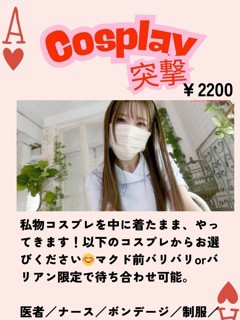 こちらからのご予約で個人アイテムとコスプレ(通常+1100円)が無料でお付けできます。数え切れないくらい色々所有してますよ♡
