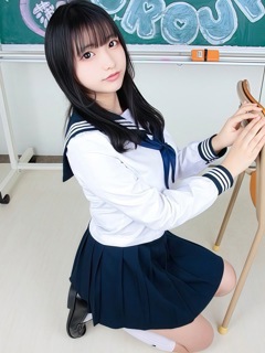 身体の発育具合とはアンバランスな幼めな顔立ちで、制服を着せたら現役感バリバリです。