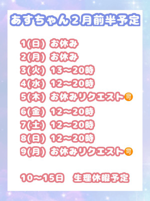 2月前半の出勤予定になります✨