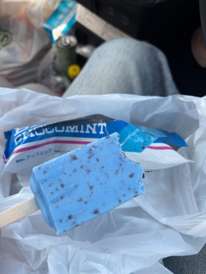 思ったよりブルーだという記事をみて、食べたいと思っていたローソンのチョコミントアイス🍨