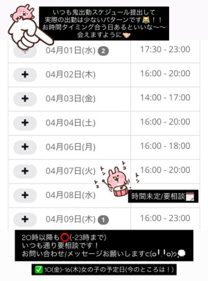 4月前半の出勤スケジュールです✅