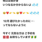 インフルエンザが 大流行してます????? 明日は我が身 いつなるか分からないよ ?? ????? ????? ??? 12月 遊びたかったのに?? ってならないように 今すぐ 元気な方は ご予約を ???? お待ちしています?? なので事前予約で埋まるより 今の時期 前日予約で固まる方が本当に助かります ?????