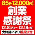 最終延長!!創業感謝祭★85分12,000円
